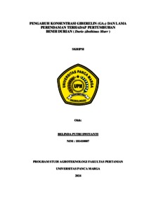 DWIYANTI, BELINDA PUTRI (2024) PENGARUH KONSENTRASI GIBERELIN (GA3) DAN LAMA PERENDAMAN TERHADAP PERTUMBUHAN BENIH DURIAN ( Durio zibethinus Murr ). Tesis thesis, Universitas Panca Marga.
