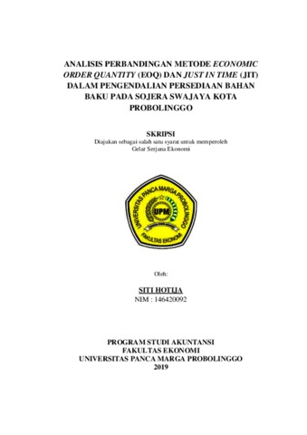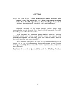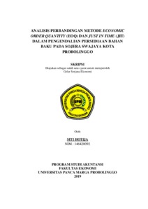 HOTIJA, SITI (2019) ANALISIS PERBANDINGAN METODE ECONOMIC ORDER QUANTITY (EOQ) DAN JUST IN TIME (JIT) DALAM PENGENDALIAN PERSEDIAAN BAHAN BAKU PADA SOJERA SWAJAYA KOTA PROBOLINGGO. Skripsi thesis, Universitas Panca Marga.