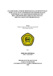 SEPTIELIA, DEBY EKA (2018) ANALISIS HARGA POKOK PRODUKSI DALAM MENENTUKAN HARGA JUAL SUSU SAPI PERAH PADA PETERNAK SUSU SAPI PERAH YANG DISETOR KE KOPERASI UNIT DESA ARGOPURO DESA KRUCIL KECAMATAN KRUCIL KABUPATEN PROBOLINGGO. Skripsi thesis, Universitas Panca Marga.
