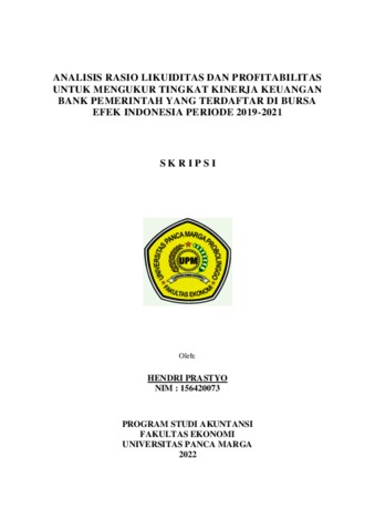 PRASTYO, HENDRI (2022) ANALISIS RASIO LIKUIDITAS DAN PROFITABILITAS UNTUK MENGUKUR TINGKAT KINERJA KEUANGAN BANK PEMERINTAH YANG TERDAFTAR DI BURSA EFEK INDONESIA PERIODE 2019-2021. Skripsi thesis, Universitas Panca Marga.