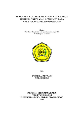RAHMAWATI, INDAH (2017) PENGARUH KUALITAS PELAYANAN DAN HARGA TERHADAP KEPUASAN KONSUMEN PADA CAFE J’BING KOTA PROBOLINGGO. Skripsi thesis, Universitas Panca Marga.