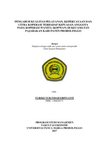 ERFIYANTI, YURIKE NUR INDAH (2017) PENGARUH KUALITAS PELAYANAN, KEPERCAYAAN DAN CITRA KOPERASI TERHADAP KEPUASAN ANGGOTA PADA KOPERASI WANITA (KOPWAN) DI KECAMATAN PAJARAKAN KABUPATEN PROBOLINGGO. Skripsi thesis, Universitas Panca Marga.