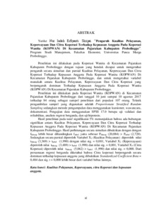 | Uncontrolled Keywords: | Kualitas Pelayanan, Kepercayaan, citra Koperasi dan kepuasan anggota. |