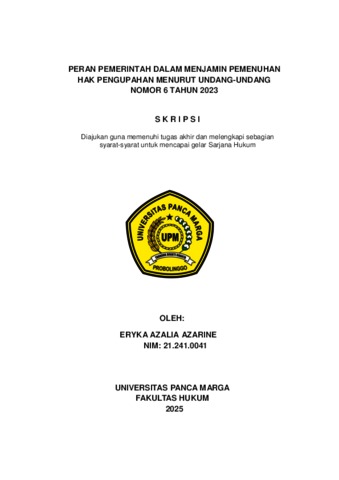 AZARINE, ERYKA AZALIA (2025) PERAN PEMERINTAH DALAM MENJAMIN PEMENUHAN HAK PENGUPAHAN MENURUT UNDANG-UNDANG NOMOR 6 TAHUN 2023. Skripsi thesis, Universitas Panca Marga.