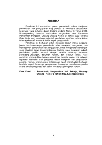 | Uncontrolled Keywords: | Pemerintah, Pengupahan, Hak Pekerja, UndangUndang Nomor 6 Tahun 2023, Ketenagakerjaan. |