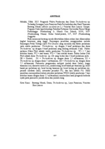 Pada umumnya bawang merah dibutuhkan dalam sehari-hari dikarenakan tingkat konsumsi yang tinggi. Rancangan penelitian menggunakan metode Rancangan Petak Terbagi (Split Plot Desain) yang memiliki dua faktor perlakuan yaitu waktu pemberian Trichoderma sp. dengan 3 taraf perlakuan dan dosis Trichoderma sp. dengan 4 taraf perlakuan yang diulang sebanyak 3 kali. Faktor pertama (Main Plot) adalah waktu pemberian Trichoderma sp. : W1 = 7 hari sebelum tanam, W2 = saat tanam, W3 = 7 hari setelah tanam. Faktor kedua (Sub Plot) adalah dosis Trichoderma sp. (D) yang terdiri dari 4 taraf perlakuan yaitu : D0 = Kontrol, D1 = Trichoderma sp. dengan dosis 2,5 ml/tanaman, D2 = Trichoderma sp. dengan dosis 5 ml/tanaman, D3 = Trichoderma sp. dengan dosis 7,5 ml/tanaman. Parameter pengamatan meliputi jumlah daun (helai), tinggi tanaman (cm), diameter umbi (cm), jumlah suing, berat basah per tanaman (g), berat basah per perlakuan (g), berat kering tanaman (g), berat kering per perlakuan (g), periode inkubasi (hari), intensitas penyakit (%), dan laju infeksi (%). Hasil penelitian menunjukkan bahwa interaksi perlakuan WID3 (waktu pemberian 7 hari sebelum tanam dengan dosis 7,5 ml/tanaman) memberikan hasil pengaruh berbeda nyata pada parameter jumlah daun dan jumlah suing.