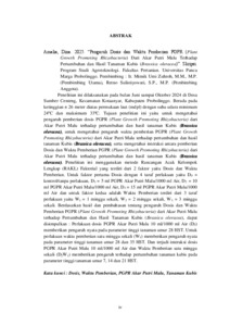 Uncontrolled Keywords: Dosis, Waktu Pemberian, PGPR Akar Putri Malu, Tanaman Kubis
