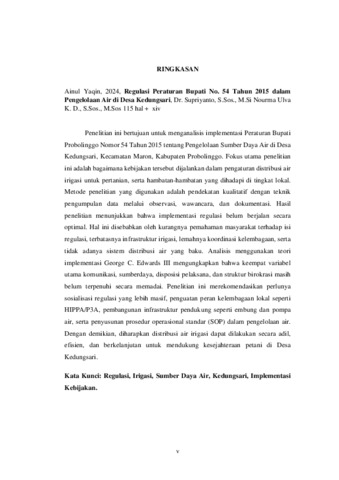 YAQIN, AINIL (2025) REGULASI PERATURAN BUPATI NO. 54 TAHUN 2015 DALAM PENGELOLAAN AIR DI DESA KEDUNGSARI. Skripsi thesis, Universitas Panca Marga.