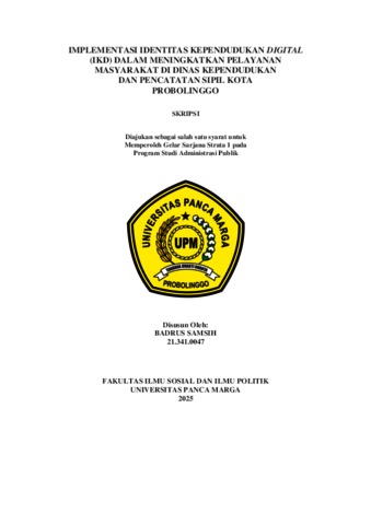SAMSIH, BADRUS (2025) IMPLEMENTASI IDENTITAS KEPENDUDUKAN DIGITAL (IKD) DALAM MENINGKATKAN PELAYANAN MASYARAKAT DI DINAS KEPENDUDUKAN DAN PENCATATAN SIPIL KOTA PROBOLINGGO. Skripsi thesis, Universitas Panca Marga.