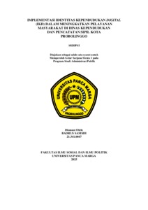 | Uncontrolled Keywords: | Pelayanan Publik, Identitas Kependudukan Digital, Administrasi Kependudukan, Digitalisasi Layanan, Kota Probolinggo |