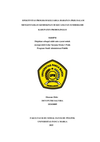 SALVIRA, DEVI PUTRI (2025) EFEKTIVITAS PROGRAM KELUARGA HARAPAN (PKH) DALAM MENGENTASKAN KEMISKINAN DI KECAMATAN SUMBERASIH KABUPATEN PROBOLINGGO. Skripsi thesis, Universitas Panca Marga.