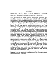 | Uncontrolled Keywords: | penataan pasar rakyat, pengelolaan pasar, Pasar Kronong, revitalisasi pasar tradisional, Kota Probolinggo |