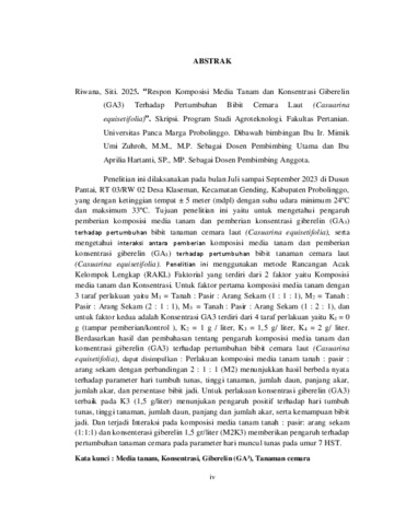 RIWANA, SITI (2025) RESPON KOMPOSISI MEDIA TANAM DAN KONSENTRASI GIBERELIN (GA3) TERHADAP PERTUMBUHAN BIBIT TANAMAN CEMARA LAUT (Casuarina equisetifolia). Skripsi thesis, Universitas Panca Marga.