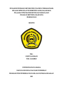 KIRANI, CHINTIA (2025) PENGARUH PENERAPAN METODE PEER TEACHING TERHADAP HASIL BELAJAR SISWA KELAS VIII SEMESTER GANJIL DALAM MATA PELAJARAN PPKN MATERI BENTUK DAN KEDAULATAN NEGARA DI SMP NURUL ISLAM KOTA PROBOLINGGO. Skripsi thesis, Universitas Panca Marga.