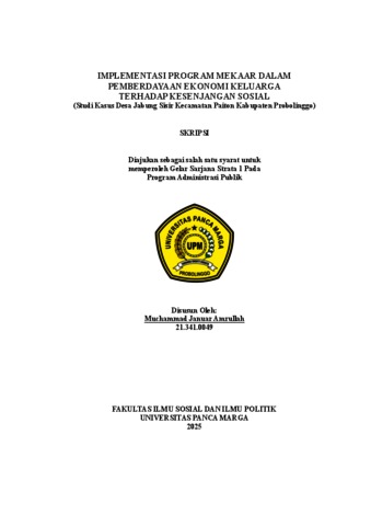 Amrullah, Muchammad Januar (2025) IMPLEMENTASI PROGRAM MEKAAR DALAM PEMBERDAYAAN EKONOMI KELUARGA TERHADAP KESENJANGAN SOSIAL (Studi Kasus Desa Jabung Sisir Kecamatan Paiton Kabupaten Probolinggo). Skripsi thesis, Universitas Panca Marga.