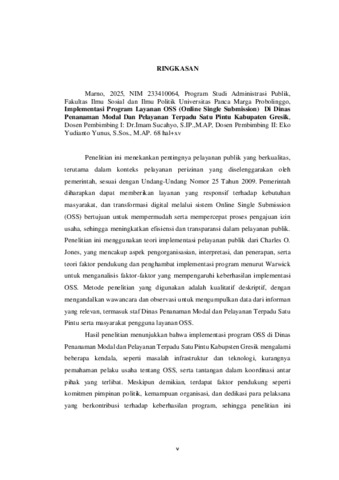 MARNO, (2025) I M P L E M E N T A S I P R O G R A M L A Y A N A N O S S ( O N L I N E S I N G L E S U B M I S S I O N ) DI DINAS PENANAMAN MODAL DAN PELAYANAN SATU PINTU KABUPATEN GRESIK. Skripsi thesis, Universitas Panca Marga.