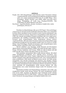 Penelitian ini dilatarbelakangi oleh guru di SD Negeri 1 Kota probolinggo yang kurang inovatif pada metode pembelajran ditemukan bahwa siswa mengalami kesulitan dalam memahami konsep fotosintesis karena metode pembelajaran yang digunakan masih konvensional, dengan hanya mengandalkan Lembar Kerja Siswa (LKS) dan ceramah menyebabkan kurangnya partisipasi aktif siswa dalam proses pembelajaran dan rendahnya kemampuan berpikir kritis siswa. Penelitian ini bertujuan untuk mengembangkan media pembelajaran diorama berbasis Augmented Reality (AR) pada materi fotosintesis dalam mata pelajaran IPAS untuk meningkatkan pemahaman dan keterampilan berpikir kritis siswa kelas IV di SDN Pilang 1 Kota Probolinggo. Penelitin ini bertujuan untuk mengembangkan media diorama berbasis augmented reality materi fotosintesis . Metode penelitian yang digunakan adalah Research and Development (R&D) dengan model pengembangan ADDIE yang terdiri dari lima tahap: Analyze, Design, Develop, Implement, dan Evaluate. Media ini telah divalidasi oleh ahli media dan ahli materi sebelum diterapkan dalam uji coba di kelas. Hasil penelitian menunjukkan bahwa media diorama berbasis AR efektif dalam meningkatkan pemahaman siswa terhadap proses fotosintesis serta keterampilan berpikir kritis mereka. Tingkat validasi diukur dari materi memproleh 90,90% sedangkan media diperoleh dengan hasil 91,66%. Siswa menjadi lebih aktif dalam pembelajaran, lebih mudah memahami konsep abstrak, dan lebih mampu menganalisis serta menarik kesimpulan dari informasi yang disajikan. Dengan demikian, pengembangan media pembelajaran berbasis AR dapat menjadi alternatif inovatif dalam meningkatkan kualitas pembelajaran IPAS di sekolah dasar. Sebagai solusi, penelitian ini mengembangkan media diorama berbasis AR yang memungkinkan siswa untuk berinteraksi dengan model 3D fotosintesis secara langsung. Kesimpulan penelitian dan Pengemabangan merupakan suatu media yang menghasilkan produk media diorama berbasis AR untuk meningkatkan berfikir kritis peserta didik. penelitian ini diharapkan dapat berdampak positif terhadap kualitas pembelajaran IPAS di SDN Pilang 1, khususnya dalam hal pemahaman materi fotosintesis dan pengembangan keterampilan berpikir kritis siswa