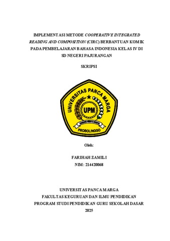 ZAMILI, FARIHAH (2025) IMPLEMENTASIMETODECOOPERATIVEINTEGRATED READINGANDCOMPOSITION(CIRC)BERBANTUANKOMIK PADAPEMBELAJARANBAHASAINDONESIAKELASIVDI SDNEGERIPAJURANGAN. Skripsi thesis, Universitas Panca Marga.