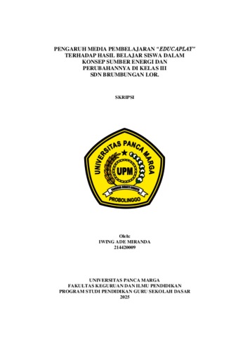 MIRANDA, IWING ADE (2025) PENGARUH MEDIA PEMBELAJARAN “EDUCAPLAY” TERHADAP HASIL BELAJAR SISWA DALAM KONSEP SUMBER ENERGI DAN PERUBAHANNYA DI KELAS III SDN BRUMBUNGAN LOR. Skripsi thesis, Universitas Panca Marga.