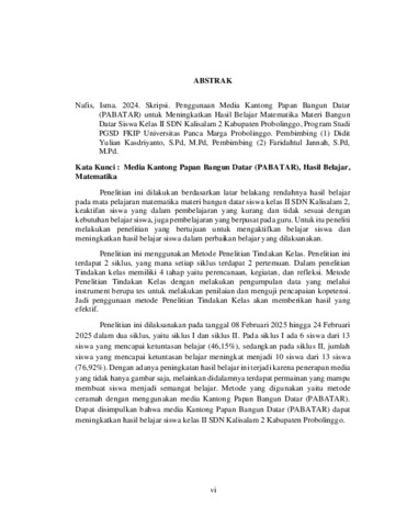 | Uncontrolled Keywords: | Media Kantong Papan Bangun Datar (PABATAR), Hasil Belajar, Matematika |