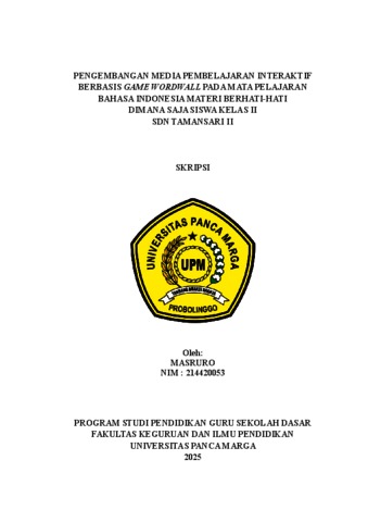 MASRURO, (2025) PENGEMBANGAN MEDIA PEMBELAJARAN INTERAKTIF BERBASIS GAME WORDWALL PADA MATA PELAJARAN BAHASA INDONESIA MATERI BERHATI-HATI DIMANA SAJA SISWA KELAS II SDN TAMANSARI II. Skripsi thesis, Universitas Panca Marga.