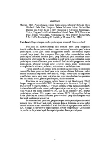 | Uncontrolled Keywords: | Pengembangan, media pembelajaran interaktif, Game wordwall |