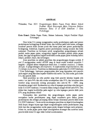 WULANDARI, YUNI (2025) PENGEMBANGAN MEDIA PAPAN PINTAR MATERI SUBJEK PREDIKAT OBJEK KETERANGAN MATA PELAJARAN BAHASA INDONESIA KELAS II A SDN SUKABUMI 2 KOTA PROBOLINGGO. Skripsi thesis, Universitas Panca Marga.