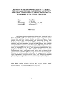Penelitian ini bertujuan untuk mengevaluasi risiko kecelakaan kerja di Divisi Partikel Board PT. Kutai Timber Indonesia dengan menggunakan metode Failure Mode and Effect Analysis (FMEA) dan Fishbone Diagram. Metode FMEA digunakan untuk mengidentifikasi dan menentukan prioritas risiko berdasarkan nilai Risk Priority Number (RPN), sedangkan Fishbone Diagram digunakan untuk menemukan akar penyebab dari risiko tertinggi. Hasil penelitian menunjukkan bahwa tiga risiko utama dengan nilai RPN tertinggi adalah: tidak tersedianya tim tanggap darurat di setiap shift (RPN 273,78), tidak adanya kontrol teknis dan administratif (RPN 266,67), serta perusahaan tidak menanggung biaya pengobatan kecelakaan kerja (RPN 238,00). Analisis akar penyebab mengungkapkan bahwa risiko-risiko tersebut berasal dari kelemahan sistemik seperti kurangnya pelatihan, SOP yang usang, serta rendahnya budaya pelaporan. Penelitian ini merekomendasikan pembentukan tim tanggap darurat, perbaikan sistem dokumentasi, penguatan kontrol teknis, serta peningkatan partisipasi pekerja sebagai upaya perbaikan sistem keselamatan kerja yang berkelanjutan.