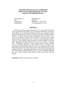 OKTAVIA, SHONIAH (2025) ANALISIS SERVICE QUALITY TERHADAP KEPUASAN PASIEN DI KLINIK AN-NISA KABUPATEN PROBOLINGGO. Skripsi thesis, Universitas Panca Marga.