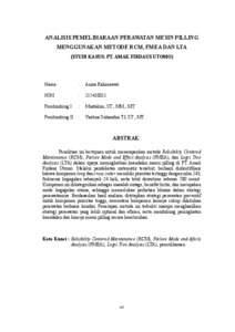 ANALISIS PEMELIHARAAN PERAWATAN MESIN PILLING MENGGUNAKAN METODE RCM, FMEA DAN LTA (STUDI KASUS: PT. AMAK FIRDAUS UTOMO)