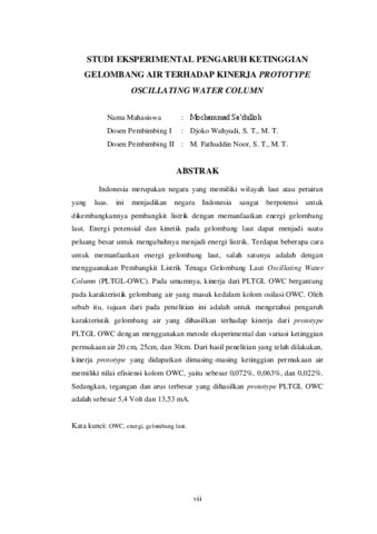 SA’DULLOH, MOCHAMMAD (2024) STUDI EKSPERIMENTAL PENGARUH KETINGGIAN GELOMBANG AIR TERHADAP KINERJA PROTOTYPE OSCILLATING WATER COLUMN. Skripsi thesis, Universitas Panca Marga.