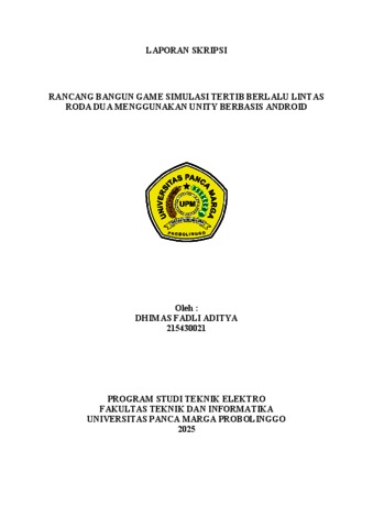 ADITYA, DHIMAS FADLI (2025) RANCANG BANGUN GAME SIMULASI TERTIB BERLALU LINTAS RODA DUA MENGGUNAKAN UNITY BERBASIS ANDROID. Skripsi thesis, Universitas Panca Marga.