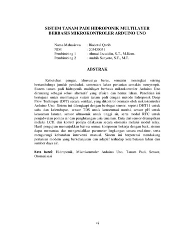 QORIB, RIADOTUL (2025) SISTEM TANAM PADI HIDROPONIK MULTILAYER BERBASIS MIKROKONTROLER ARDUINO UNO. Skripsi thesis, Universitas Panca Marga.