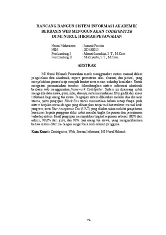 | Uncontrolled Keywords: | Codeigniter, Web, Sistem Informasi, MI Nurul Hikmah |