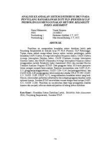 Penelitian ini menganalisis keandalan sistem distribusi listrik pada Penyulang Banjarsawah di wilayah kerja PT PLN (Persero) ULP Probolinggo. Tujuan utama adalah mengevaluasi kinerja sistem melalui perhitungan indeks keandalan SAIFI (System Average Interruption Frequency Index), SAIDI (System Average Interruption Duration Index), CAIDI (Customer Average Interruption Duration Index), dan MAIFI (Momentary Average Interruption Frequency Index) menggunakan metode Reliability Index Assessment (RIA) dan simulasi Electric Transient Analyzer Program (ETAP). Data gangguan tahun 2024 serta parameter teknis jaringan menjadi basis analisis. Hasilnya menunjukkan nilai SAIFI (0,45– 3,11 gangguan/pelanggan/tahun), SAIDI (7,04–13,41 jam/pelanggan/tahun), dan CAIDI (0,06–4,30 jam/gangguan) lebih rendah dari standar SPLN 59:1985 (SAIFI: 3,21; SAIDI: 21,09; CAIDI: 6,57), mengindikasikan keandalan sistem yang baik. Namun, rekomendasi perbaikan infrastruktur dan mitigasi gangguan diajukan untuk optimasi kinerja. Simulasi ETAP memvalidasi temuan dengan hasil serupa (SAIFI: 3,11; SAIDI: 12,06). Penelitian ini memberikan dasar bagi peningkatan kualitas layanan dan menjadi referensi akademik/praktisi di bidang sistem distribusi.
